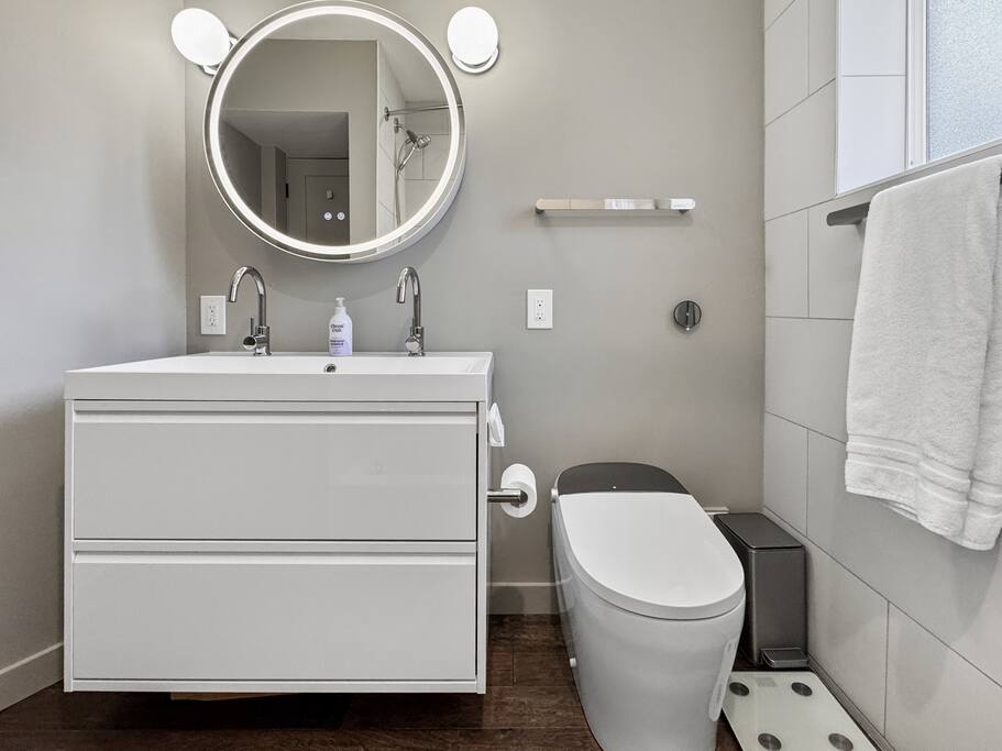 30+ day stays for traveling professionals. Standing desk with large monitor. Enjoy midcentury charm with modern comforts in this rare Cherry Creek North gem — a beautifully updated 1950s 2 bed / 2 bath residence in one of Denver’s most desirable and walkable neighborhoods. You have your own entrance, laundry, HVAC, and noise-proofing for comfort and privacy. Your primary bathroom has heated floors, smart bidet toilets. The unit is full of natural light and feels warm, bright, and spacious.