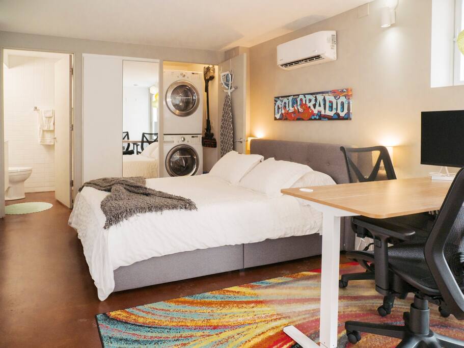 This is a studio efficiency suite. There is a comfy queen. The fully-stocked kitchenette includes a sink, dishwasher, stovetop, microwave, toaster, and coffee maker. We supply fresh coffee for your stay. There are high efficiency front-loading laundry machines for your use. We have three cute apartment homes on our property, each varying in size. We've updated and furnished each with modern decor. We live in one home and the others are guest homes available on AirBNB. If you are traveling with a group who wants to stay nearby: 1-bedroom, listing 7235397 or 4-bedroom, listing 32935138 (search for airbnb and the listing #) This is the private first level of a two-level home. The hosts live on site and share a yard with the suite. The sights are spread out in the west. You’ll likely want a car to get around and plan on driving time. And note that Denver International Airport (DIA) is 45 minute drive from the city and not centrally located near any sights. Wifi is super important to us as we're working from home and we want to proved the best available to our guests to be able to do the same. We have gigabit internet from Xfinity. It's the best available in our area. We also have the latest mesh wifi router system to provide the best wifi connections to our guests.