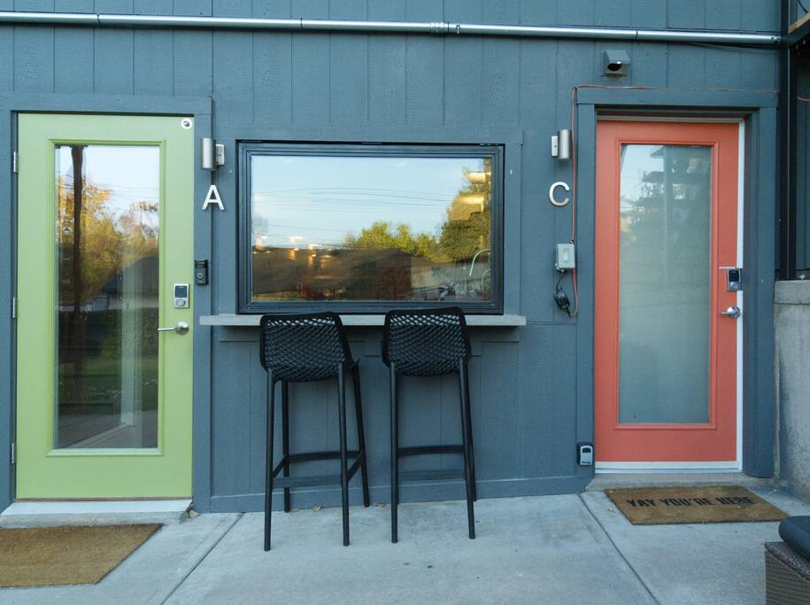 You have access to the house and fenced yard. Please park in the street and enter the gate into the yard and patio. At the left, you will find a glass door with a keypad that will accept your code. Our home and guest homes share the property, each varying in size. We've updated and furnished each with modern decor. We live in one home and the others are guest homes available on AirBNB.