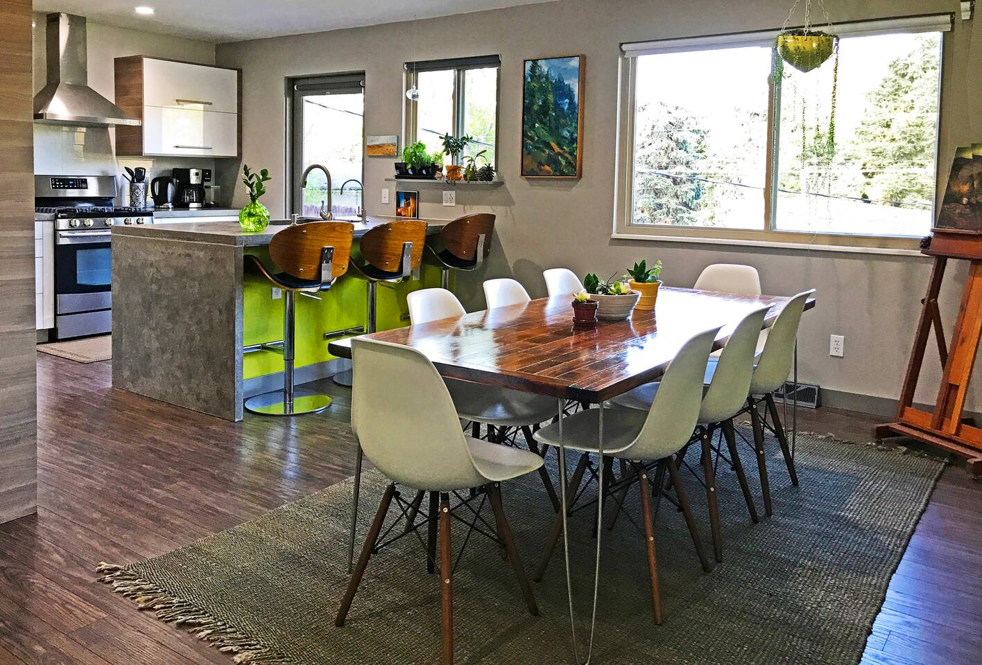 This is a two-bedroom home. Each room has a comfy queen bed. The fully-stocked kitchen with concrete countertops is complete with a big sink, dishwasher, range, microwave, toaster, and coffee maker. We supply fresh coffee for your stay. The backyard is shared with our lower level apartments. Guests who rent the other apartments access them through their own private entrances via the back patio; you will not have any shared interior space with them. We have taken extra measures to soundproof the spaces. If your group would like to rent one or both of the apartments with the rest of the house, you can find them here: 1 bedroom: property 7235397 Studio: property 28009611 The sights are spread out in the west. You’ll likely want a car to get around and plan on driving time. And note that Denver International Airport (DIA) is 45 minute drive from the city and not centrally located near any sights.